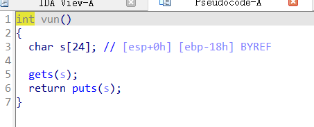 要通过s实现栈溢出,s的基地址位于ebp-18h,要覆盖到ebp,需要传入0x18字节的数据,然后传入4字节数据覆盖ebp,再传入真实地址。