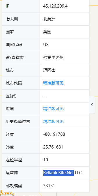 直接查询IP信息,得到 ReliableSite.Net