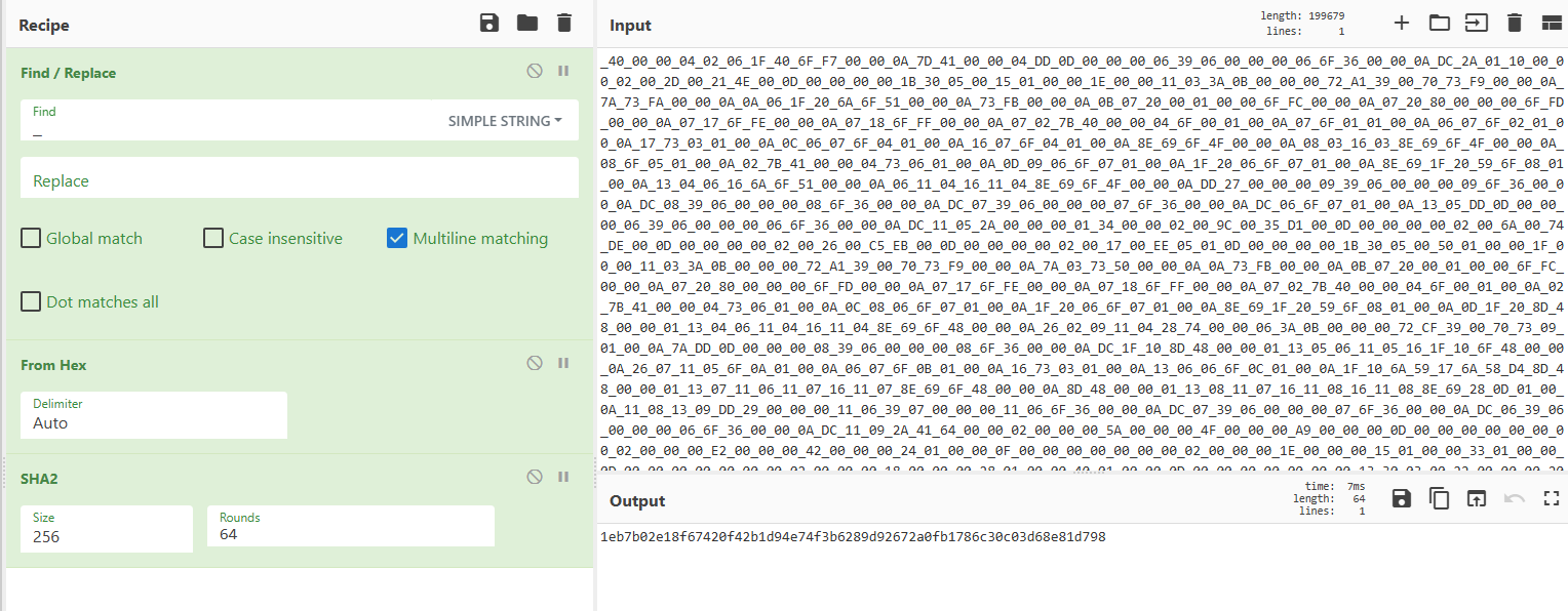 先复制出来,把下划线去掉,然后作为hex输入,进行sha256计算。