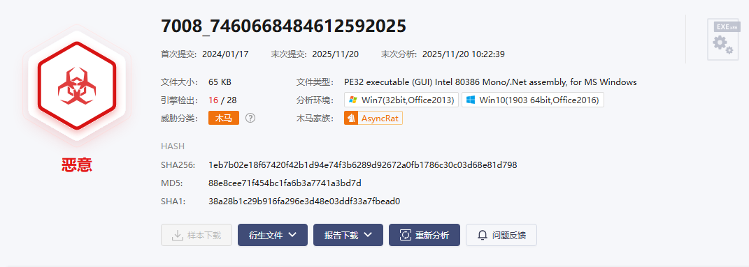微步跑一下,得到家族为AsyncRat